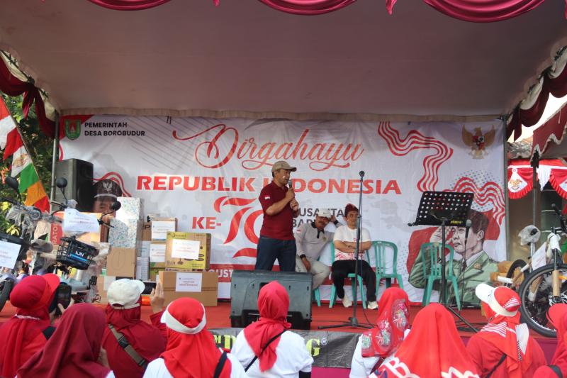Untuk memperingati dan menyemarakkan HUT RI ke 79, Pemerintah Desa Borobudur mengadakan kegiatan jalan santai yang diikuti oleh warga Desa Borobudur dari berbagai elemen Masyarakat. Jalan santai ini dilaksanakan pada hari Minggu, 18 Agustus 2024 kemaren. Peserta jalan santai ini diperkirakan dihadiri sekitar 4.000 orang.