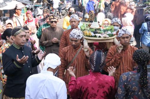 Di Pasar Borobudur tumpeng dibagikan kepada para pedagang sebagai simbol ekonomi dan ungkapan rasa syukur atas rezeki yang diberikan Tuhan.