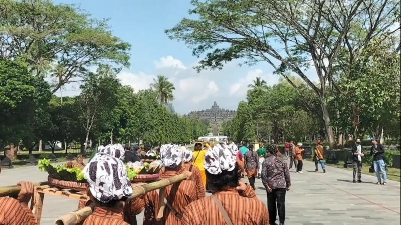 Kirab dimulai dari Kantor Balai Desa Borobudur, menuju Pasar Borobudur dan pelataran candi, untuk berbagi dan melakukan doa bersama.